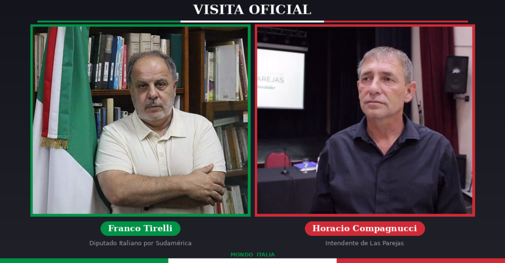 El Diputado Italiano, Franco Tirelli, realiza este viernes 13 de marzo una visita oficial a Las Parejas y Las Rosas, dos ciudades del sur de la provincia de Santa Fe con profundas raíces italianas. La jornada combina reuniones institucionales de alto nivel con recorridas por espacios culturales y educativos que son corazón de la comunidad italiana local.